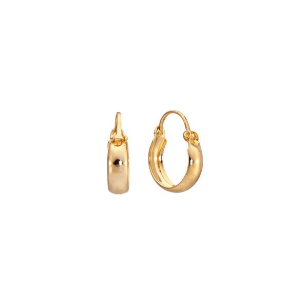 Nuestras argollas infantiles laminadas en oro de 18 quilates combinan elegancia y comodidad. Con un diseño clásico y un acabado brillante, son perfectas para cualquier ocasión, garantizando un ajuste seguro y cómodo para las delicadas orejitas de las niñas.